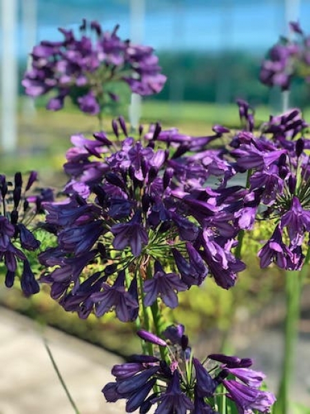 Variété semi-persistante d’agapanthe à la floraison originale de couleur bleu mauve.