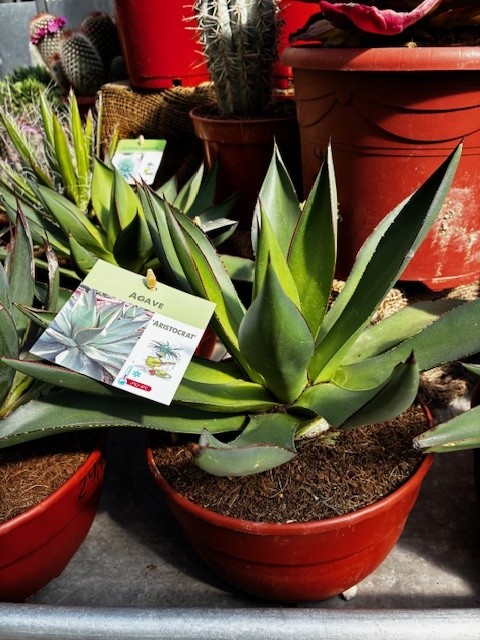 Bel hybride compact et érigé entre Agave celsii et Agave polianthiflora offrant des petites feuilles vert olive bordées de nombreuses et minuscules dents rouges et or.