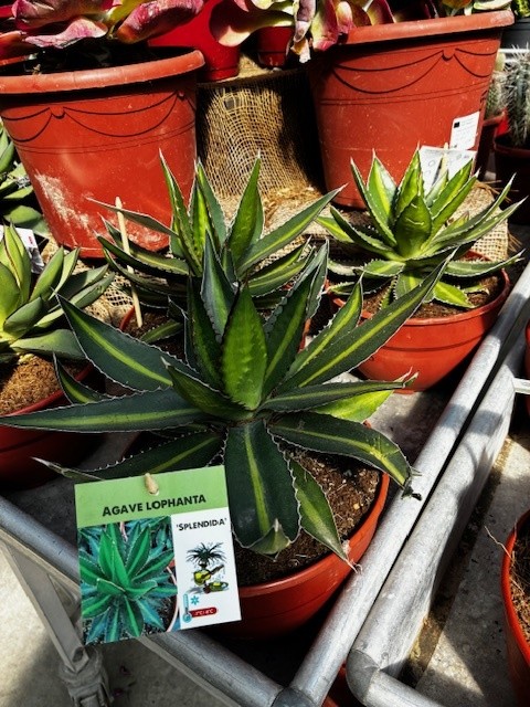 La couleur de l’agave lophantha varie entre un vert sombre et un bleu-vert avec une bande plus claire au centre des feuilles. Il forme rapidement une colonie avec la production de nombreux rejets. Idéal à placer sur un talus au soleil pour un aspect exotique !
