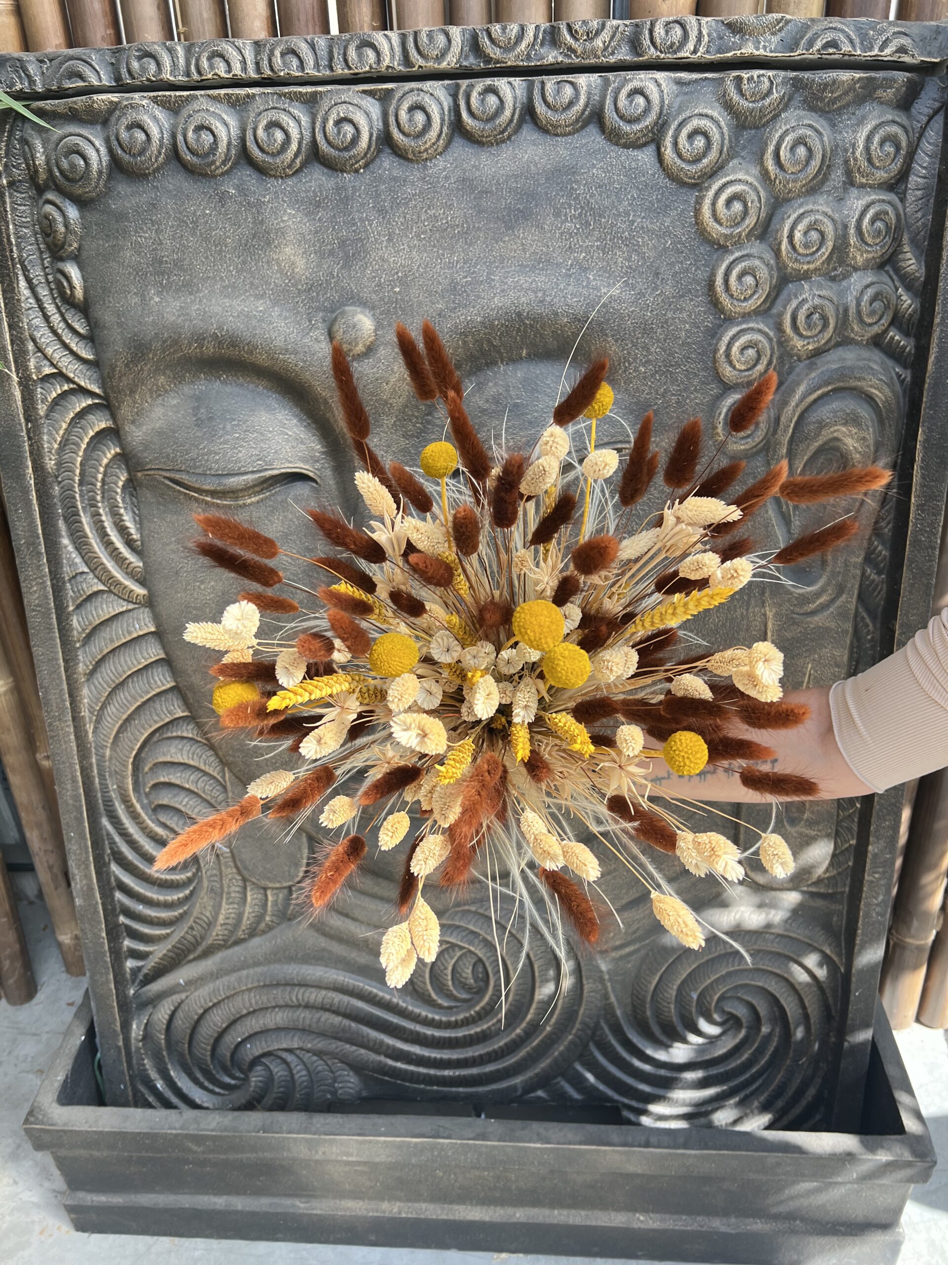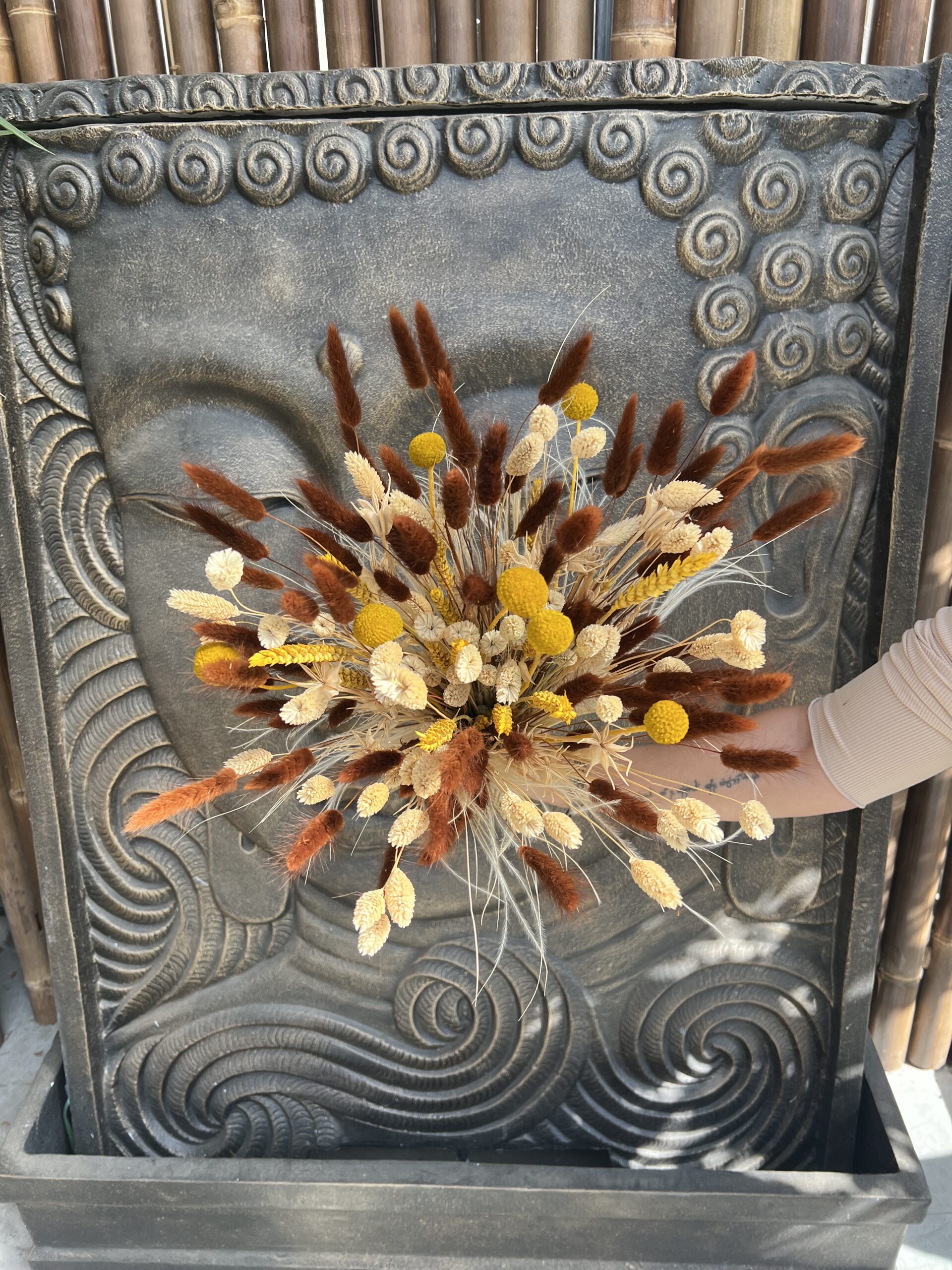 Ce bouquet de fleurs séchées est composé d’une sélection de fleurs séchées aux tonalités naturelle, marron et jaune, évoquant une touche automnale.