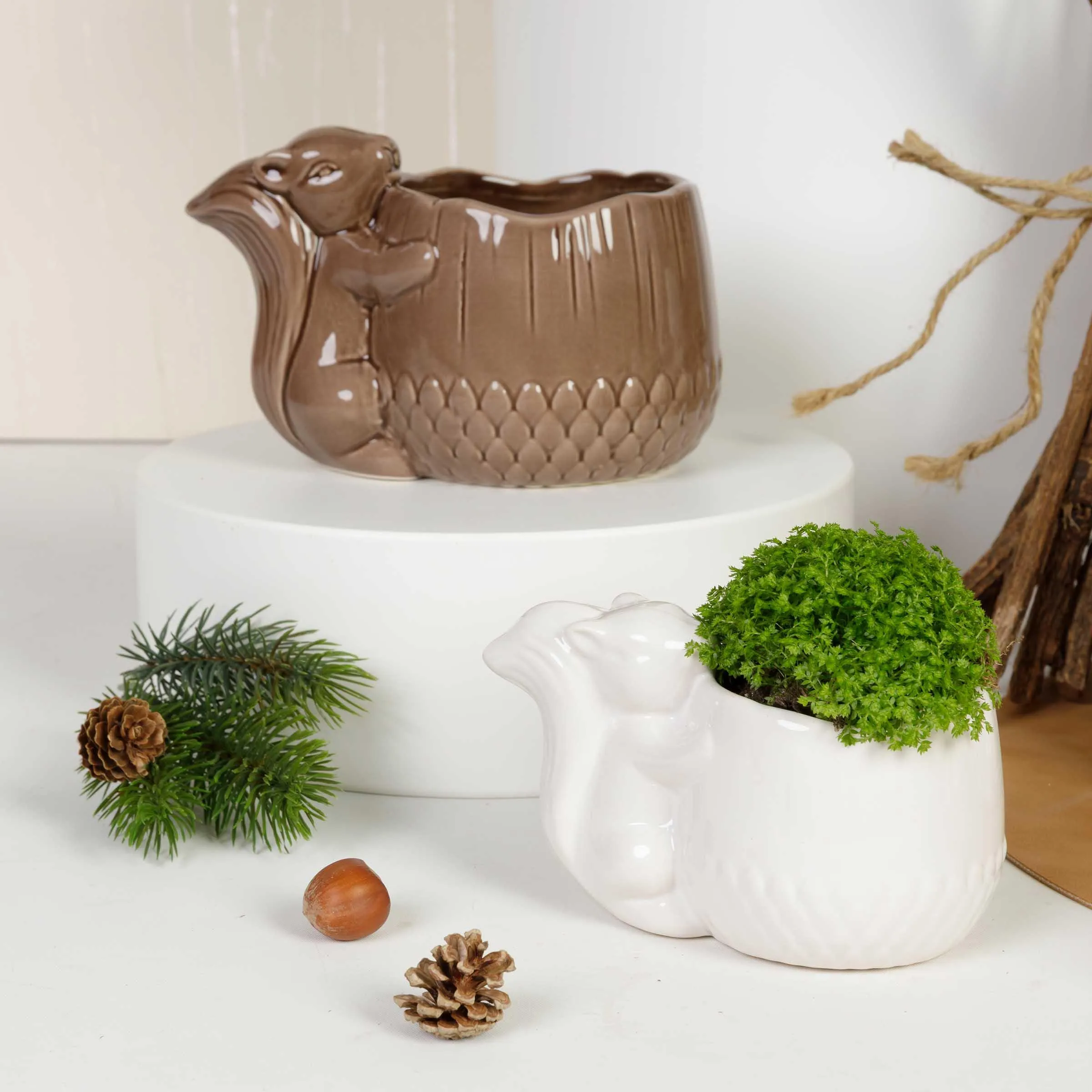 Parfait pour votre décoration d’automne, utilisez votre cache-pot en forme de noisette tenue par un adorable écureuil pour mettre en avant vos plus belles plantes !