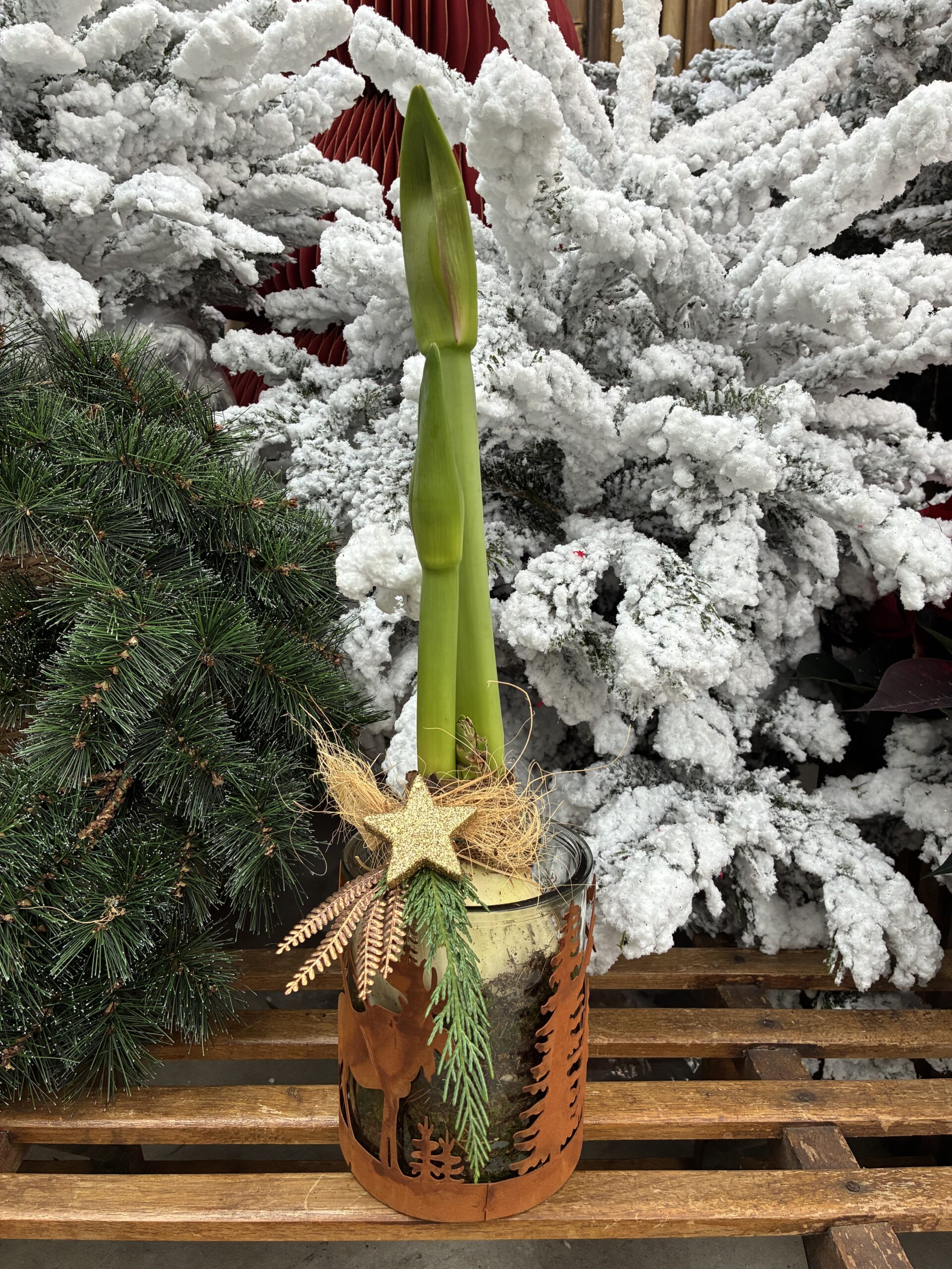 Elle est réalisée par nos soins dans nos ateliers avec un cache pot original sur le thème de la forêt, idéal pour une décoration de fête de fin d’année!