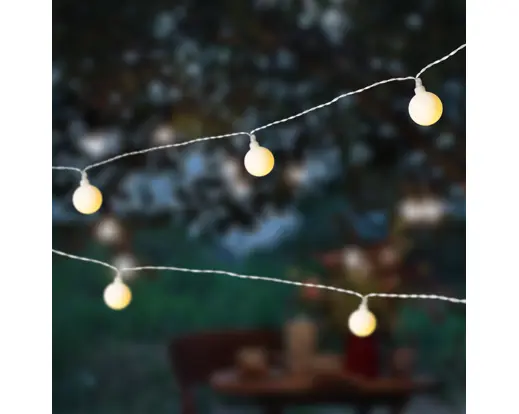 Cette guirlande solaire fixe à LED  (blanc chaud) vous accompagnera tout au long de l’année et sera idéale pour les soirées d’été sur la terrasse ou dans le jardin.