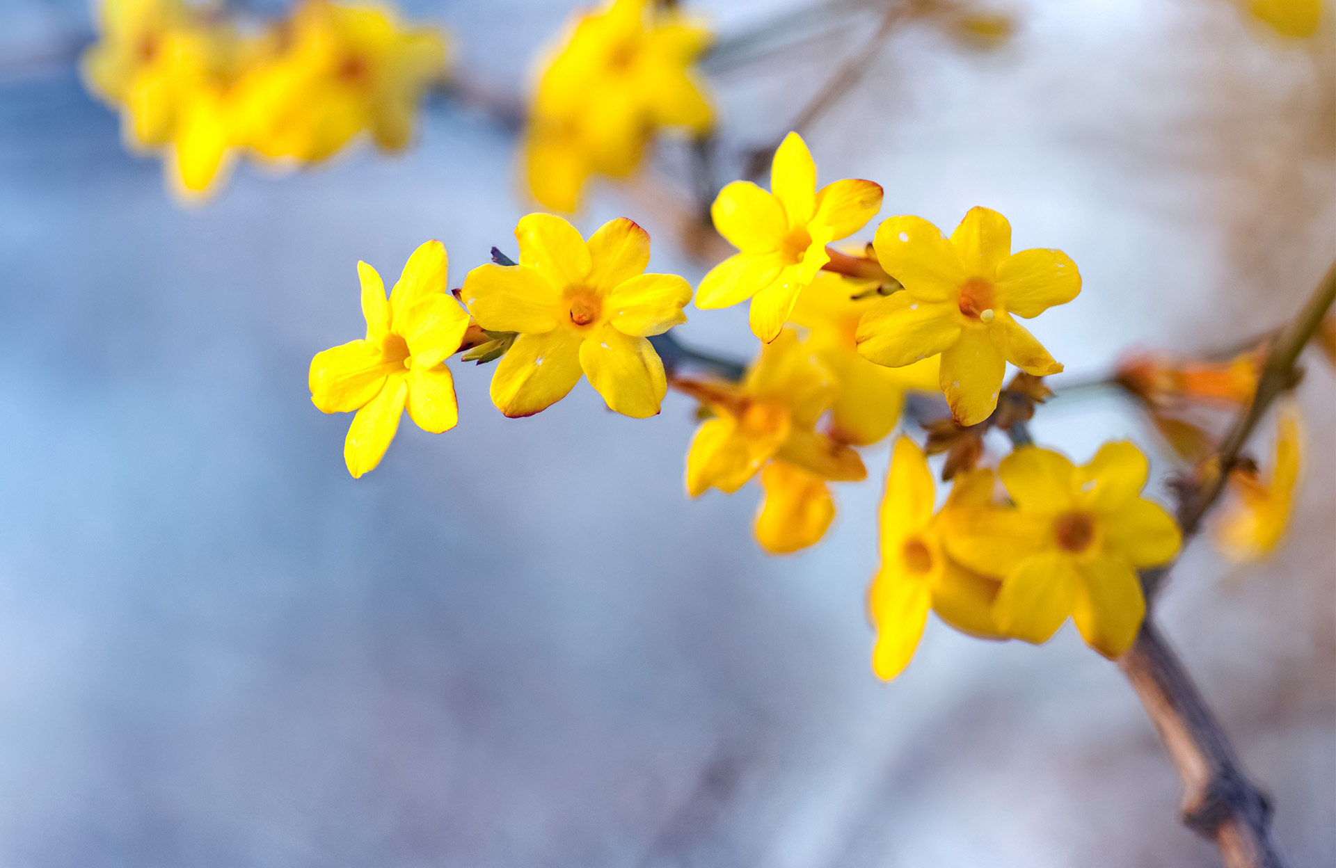 Le jasmin d’hiver a la particularité de fleurir pendant l’hiver, de décembre à avril alors que les autres fleurs sont encore rares. Plante vigoureuse au feuillage vert foncé disparaissant l’hiver pour laisser place à de nombreuses fleurs jaunes. Convient en tous sols et toutes expositions.