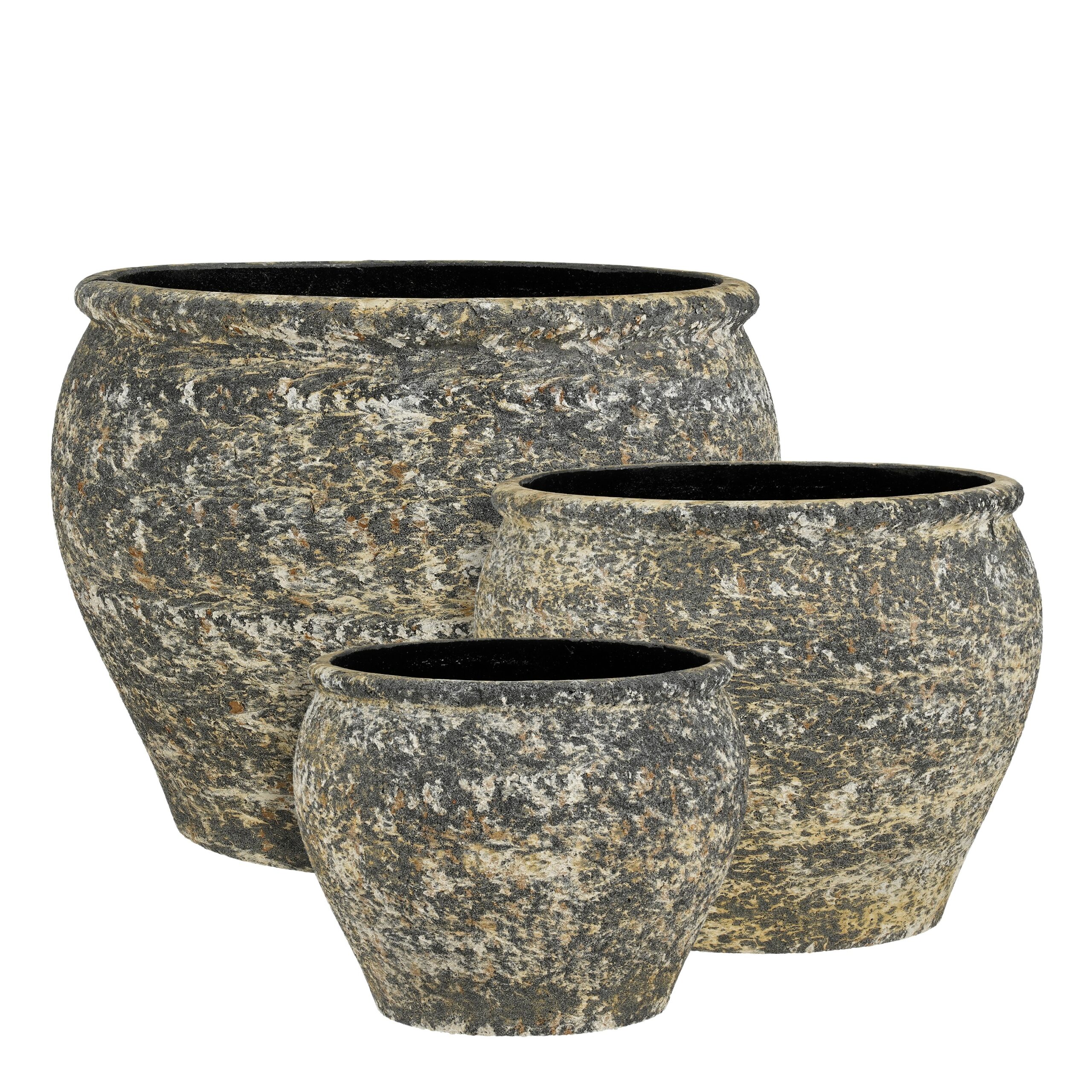 Ce pot est en fibre de pierre, aussi appelé fiberstone. Ce matériau ultra résistant est réalisé à partir de poudre de pierre naturelle et de résine de fibre de polyester, offrant un rendu à l’aspect brut et artisanal. Idéal pour une décoration épurée et contemporaine. À la fois utile et esthétique, ce pot fera de l’effet sur un balcon, au bord d’une piscine ou d’une cour.