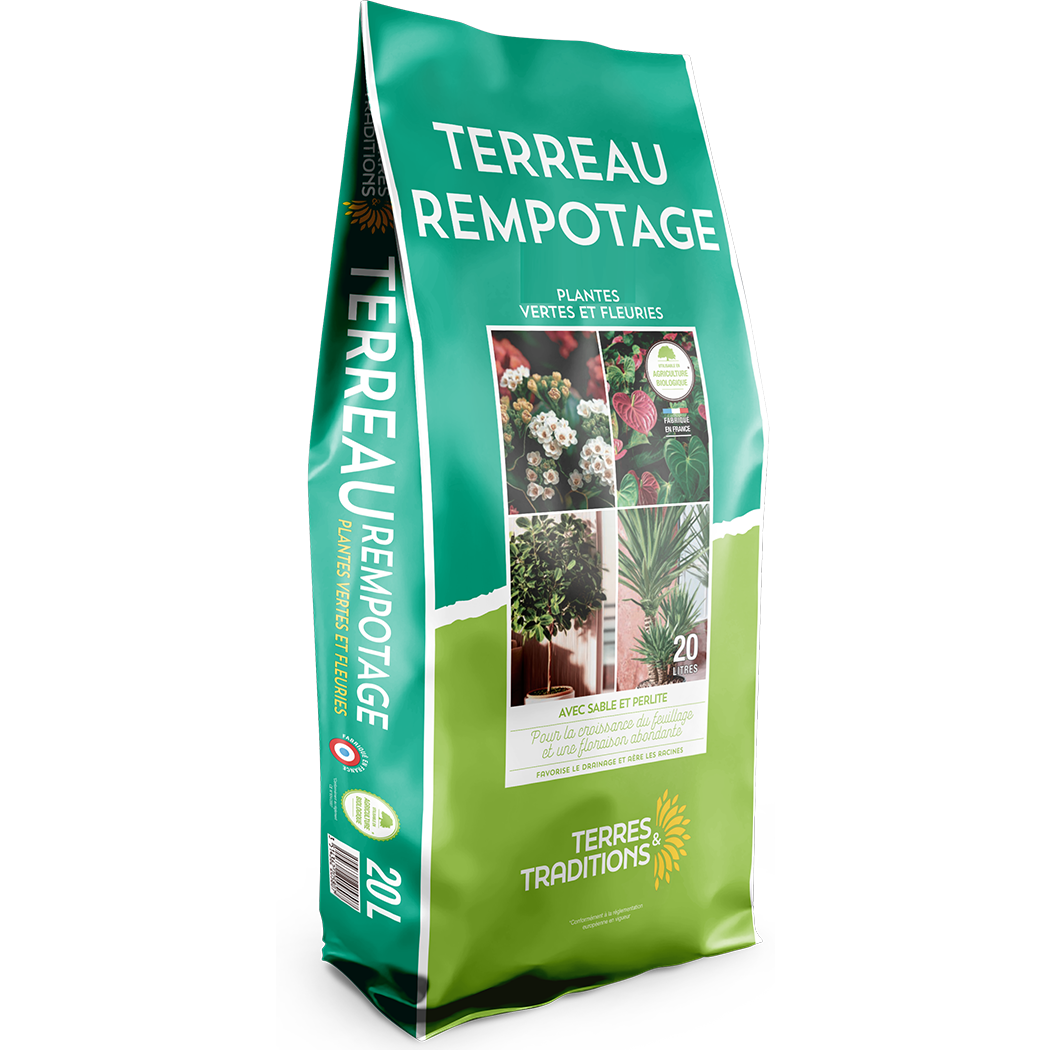 Terreau avec sable siliceux et perlite pour une meilleure rétention en eau et excellente aération des racines.