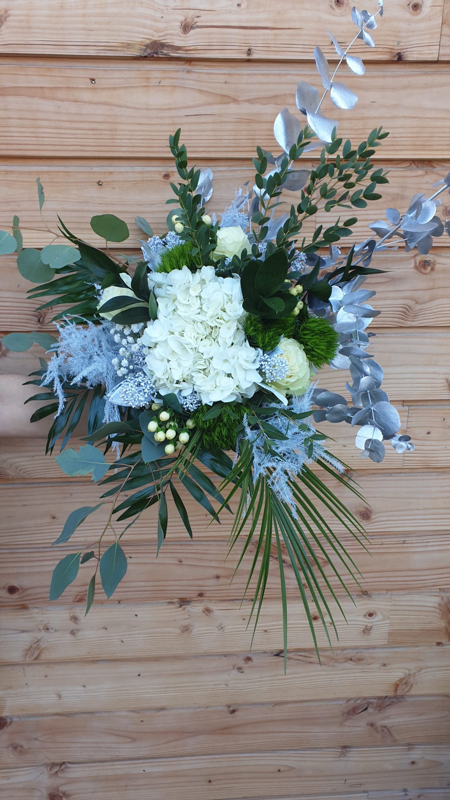 Gros coup de coeur pour ce Bouquet aux tonalités hivernales. Blanc glacial et argent s’allient pour le plaisir des yeux. A offrir sans modération.